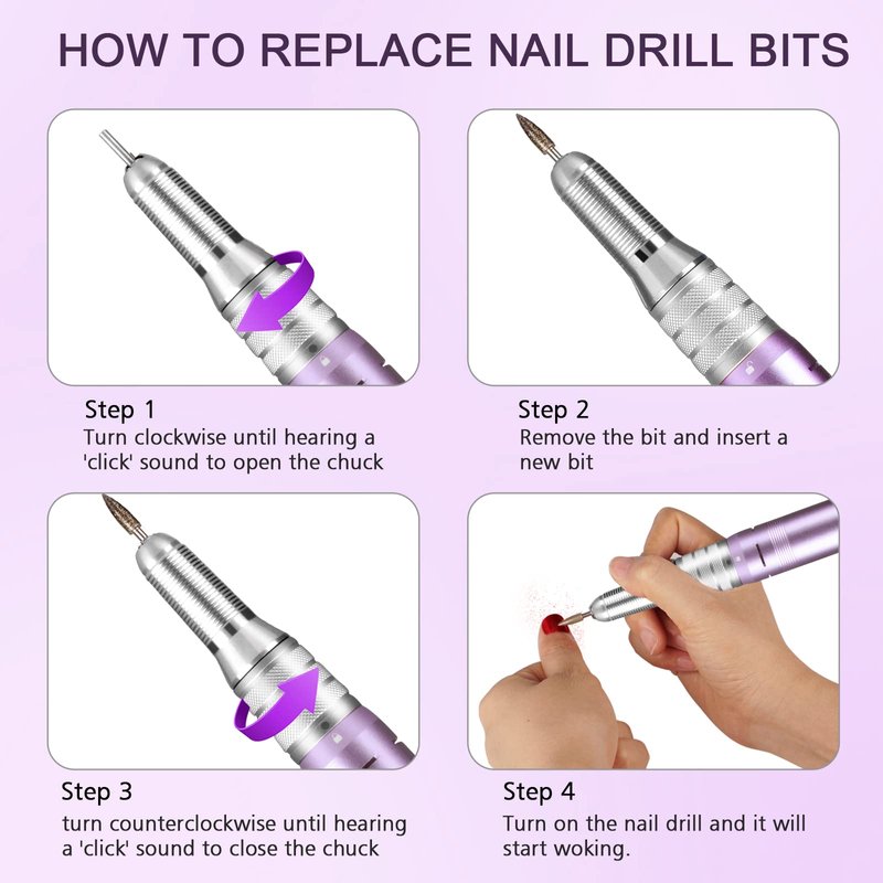 3.Install the nail drill bits.