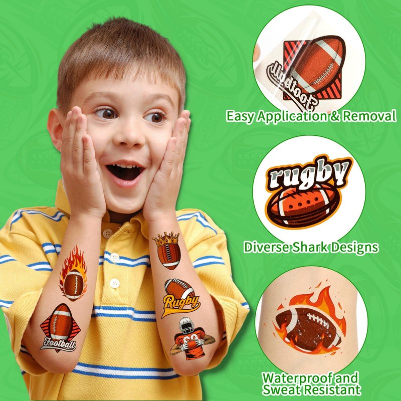 - Easy to Use: Place your favorite pattern face down on clean and dry skin, wet the temp tattoo with water and wait for Different Occasions: These football temporary tattoos can be used as birthday party gifts, or can be used to decorate your sports party as party supplies to give your friends, neighbors, DIY decorations, gifts.