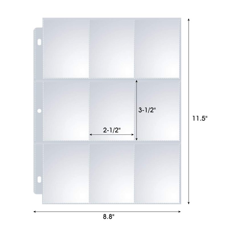 Sooez 9 Pocket Page Protector, Trading Card Sleeves Pages Coupon Pages for 3 Ring Binder, Card Sheets for Standard Size Cards Perfect Choice to organize and protect your cards with Sooez 9 pocket sleeves. Great for organizing and protecting all kinds of your cards, such as game cards, basketball cards, and football cards.