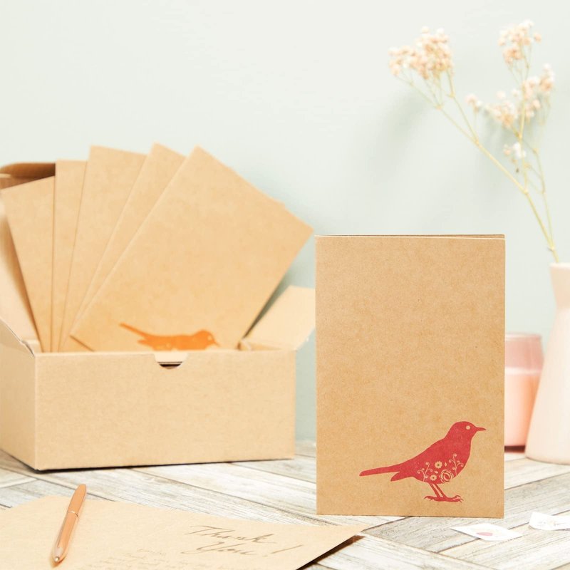 - Notecards and Envelopes Set: This boxed set of bird thank you cards comes with 36 blank notecards and 36 corresponding v-flap envelopes in 6 silhouette bird designs