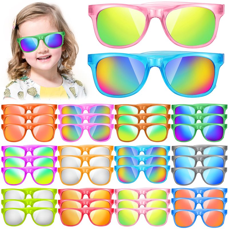 - Party Favor: Kids sunglasses bulk are a hit at outdoor activities, Graduation, birthdays, summer camps, 80s retro party, end of school year gift for students and more. Goodie bag Stuffers and class prizes, allowing children to sport their favorite colors and styles with joy.