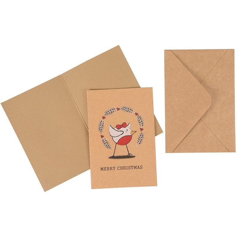 - Bulk Christmas Cards: This box of kraft holiday greeting cards contains 36 festive cards with 36 corresponding brown envelopes to send warm wishes this holiday season