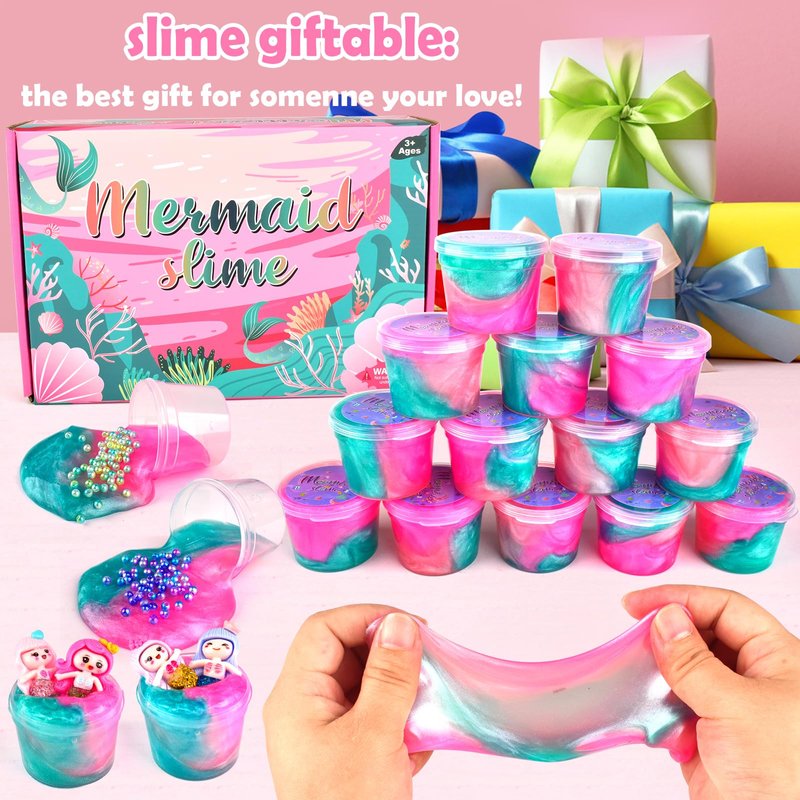 36 Pack Mermaid Slime Kit, Soft & Non-Sticky Galaxy Slime Pack, Mermaid Party Favors for Kids, Slime Party Favors for Girls & Boys, Bag Stuffers, Cute Stuff for Girls