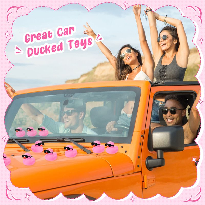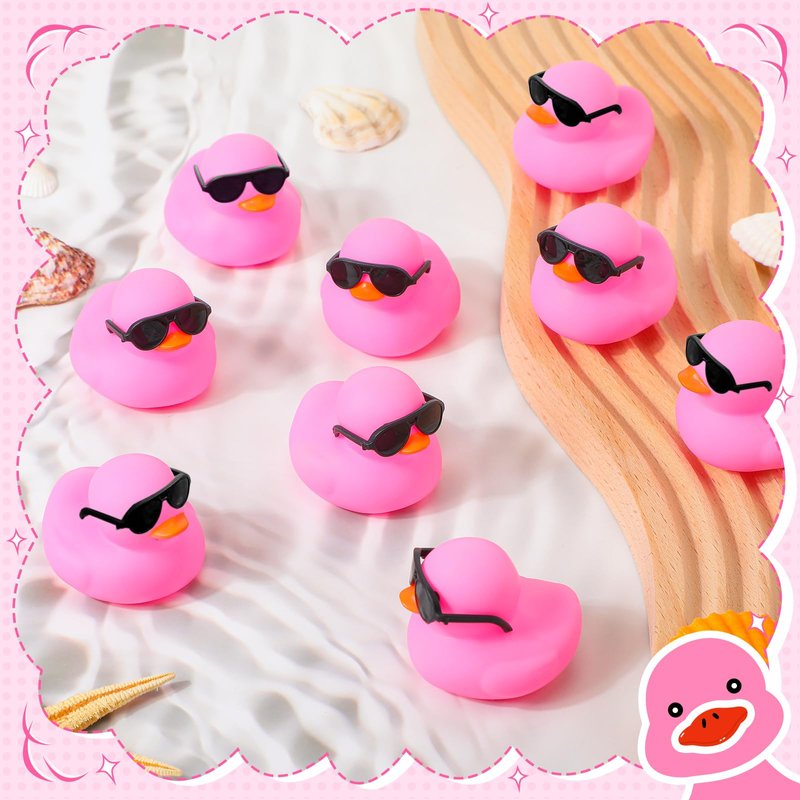 - Products Include: you'll receive 36 pink small rubber ducks, paired with 36 black mini glasses, enough to share with your family or friend; Besides, these ducks and sunglasses are separate, you can wear sunglasses on the ducks' eyes, cute and interesting; Note: if the accessories fall off, you can glue them back by yourself