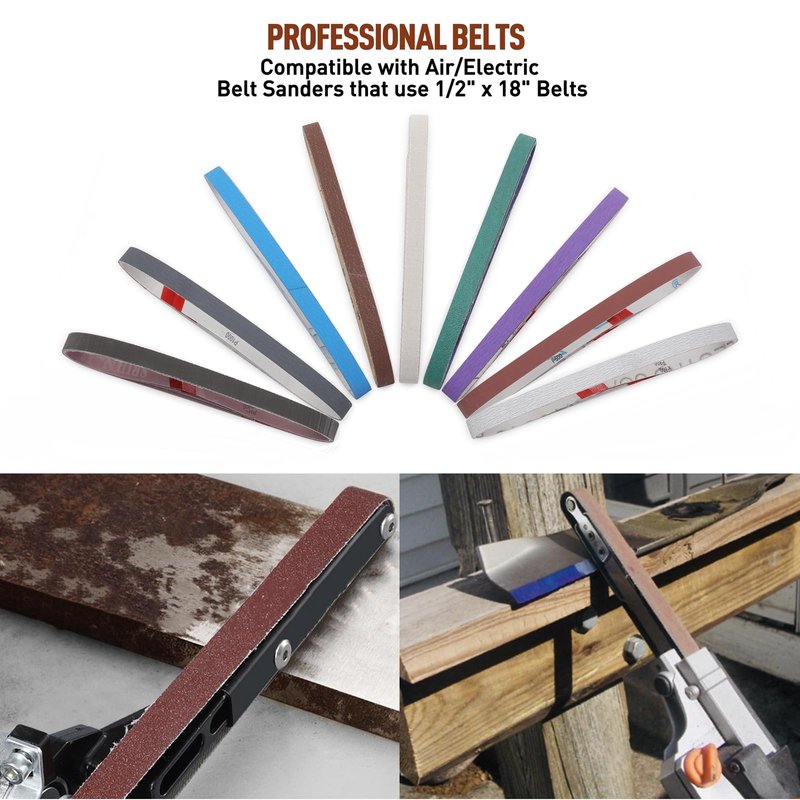 - 【Compatibility】The 1/2" x 18" Replacement Belt Kit compatible with Air/Electirc Belt Sander that use 1/2" x 18" belts.