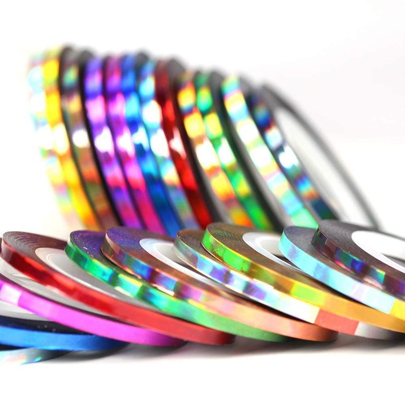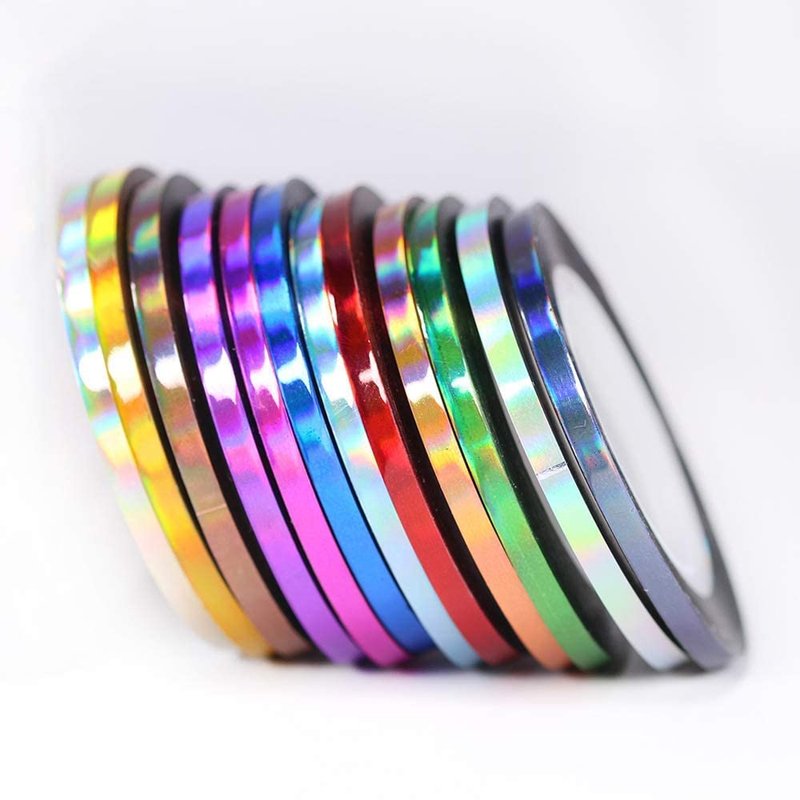 - 【Holographic Effect 】These nail tapes are laser and holographic strips,suit design nail art at home or nail salon.Texture nail tape strips for design.This striping tape for tumblers is made of environmentally friendly plastic and paper materials,french line nail stickers's color on the very bright,in the light nail art stickers tapes can have a dazzling nail chrome powder color and laser effect.