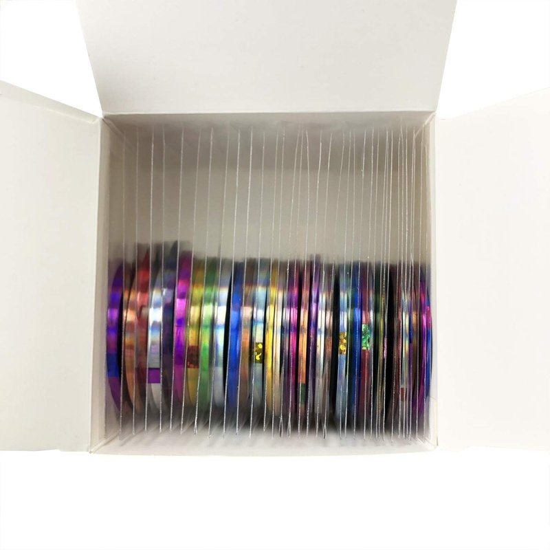 - 【Color】36 pcs Nail Art Striping Tape Line Sets,these nail foils tape are similarities but have a little different with color of size.Come with laser silver,golden,green,blue,red,purple etc chrome nail powder color nail art striping tape.holographic nail gold tape.These nail art line tape stickers can be used to design your nail tumblers art,nail patterns,nail manicure tumbler etc.Aslo can be used with UV Gel,striping tape for nail art silver,etc.
