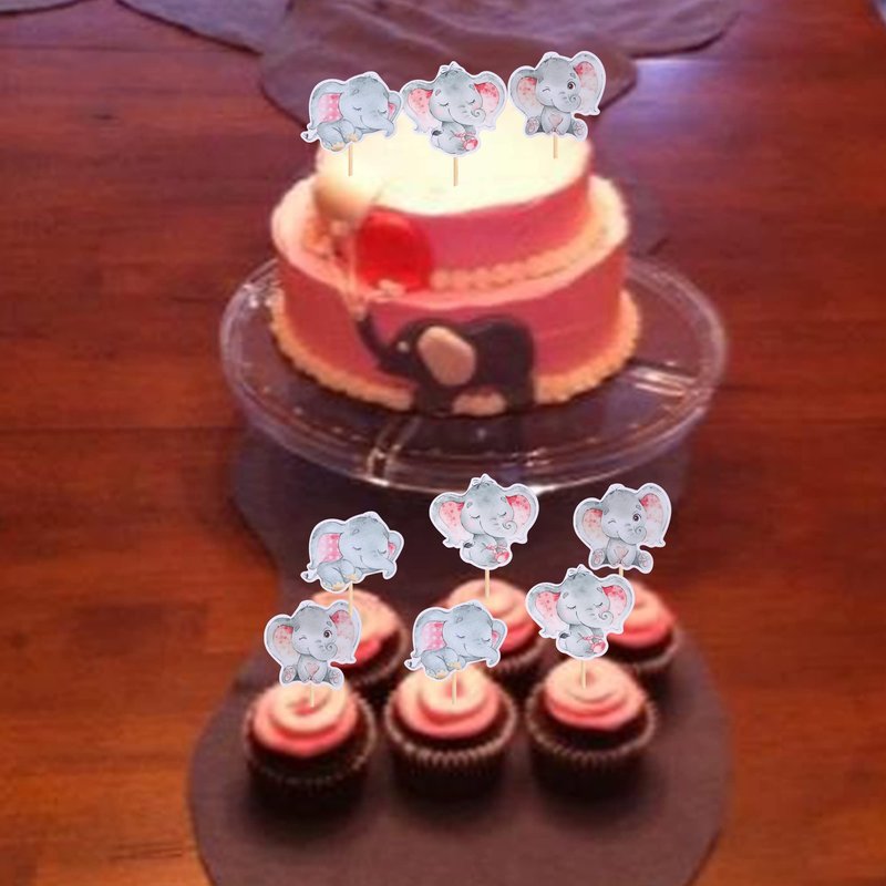 Elephant Theme Baby Shower Birthday Party Cupcake Decorations Supplies