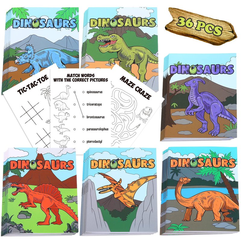 36 Pcs Dinosaur Mini Activity Books for Kids DIY Game Books Set with Pterosaur Dragon Egg Tyrannosaurus Patterns Mini Coloring Book Party Favors Goodie Bags Stuffers Classroom Back to School Supplies