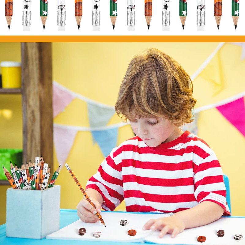 - Quality Material: our sports pencils are made of quality wood and graphite, safe and sturdy, with a smooth surface, comfortable to hold, and not easy to break, can bring children a nice writing experience; The ball erasers are in the shape of balls, which are both interesting and practical