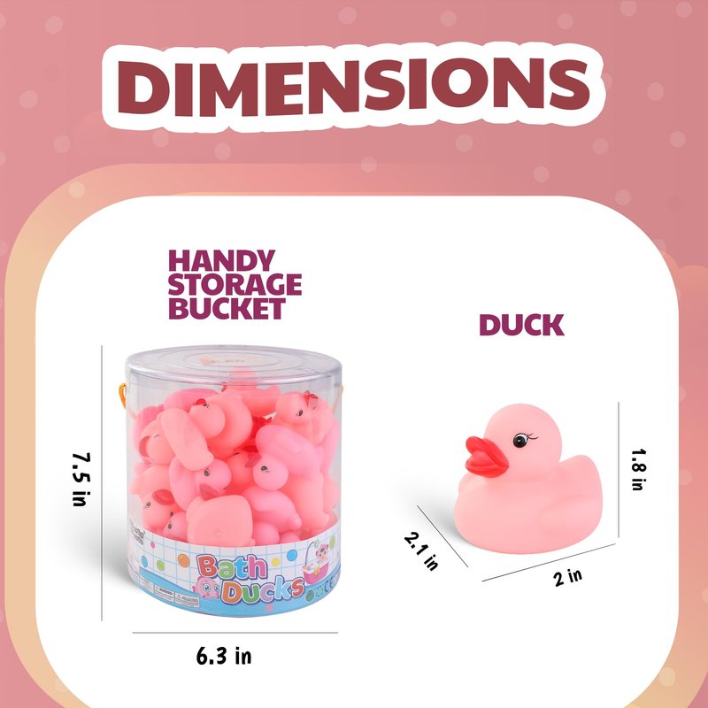 - SAFE SPLASHING: Our 36 Pieces Pink Rubber Duck Bath Toys are the ultimate in safe and squeaky-clean fun. With no harmful chemicals like BPA, Phthalates, or Lead, your little one can splash away in complete safety.