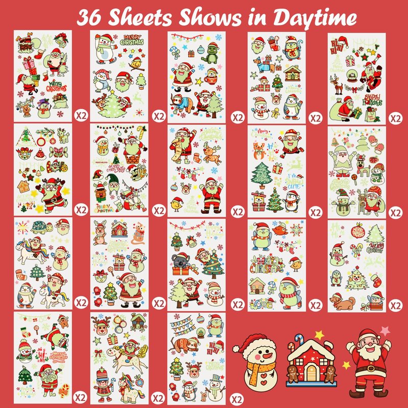 36 Sheets Glow Christmas Temporary Tattoos for Kids, Boys Girls Luminous Christmas Fake Tattoos Stickers, Stocking Stuffers and Gifts Christmas Party Favors, christmas toys bulk, stocking stuffers for kids
