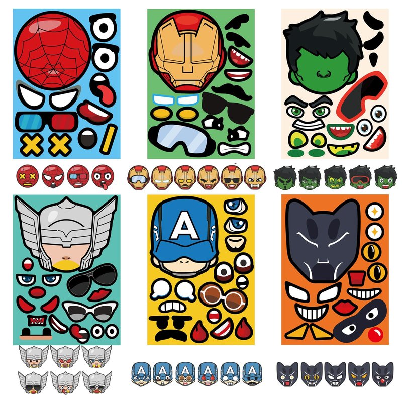 - 🕷 Spidey & Friends Make a Face Stickers: These cartoon characters stickers are vibrantly printed, with a film covering the surface, making them thick, glossy, and waterproof. They are colorfast and safe with no odd smell. Kids can create their own favorite hero characters on various smooth and flat surfaces.