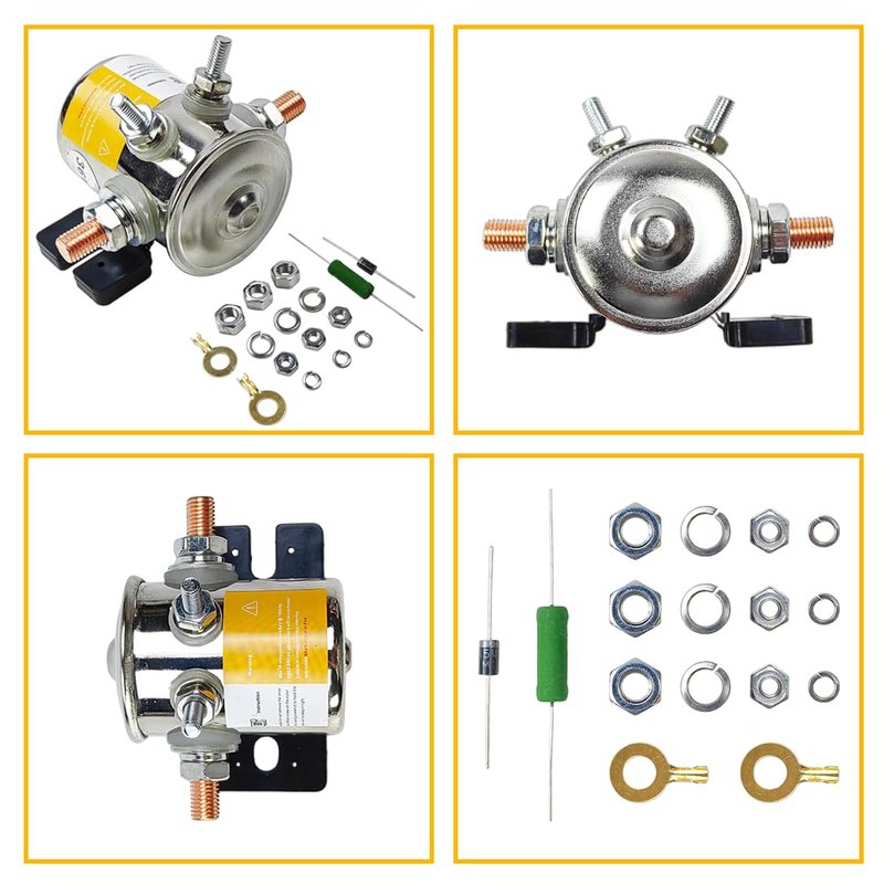 - Product Includes: -1X Solenoid Relay | -6X Washers & Nuts | -2X Copper Wire Lugs | -1X Solenoid Resistor | -1X Solenoid Diode |
