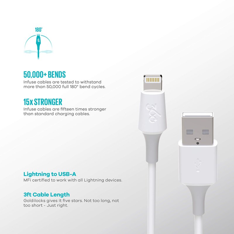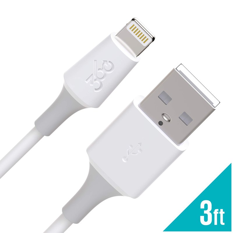 360 Electrical Infuse 3ft Premium Charging Cable Lightning Connector, White, MFi Certified, iPhone Cable Fast Charging, Ipad Charging Cord, Lightning Charger Cables for iPhone