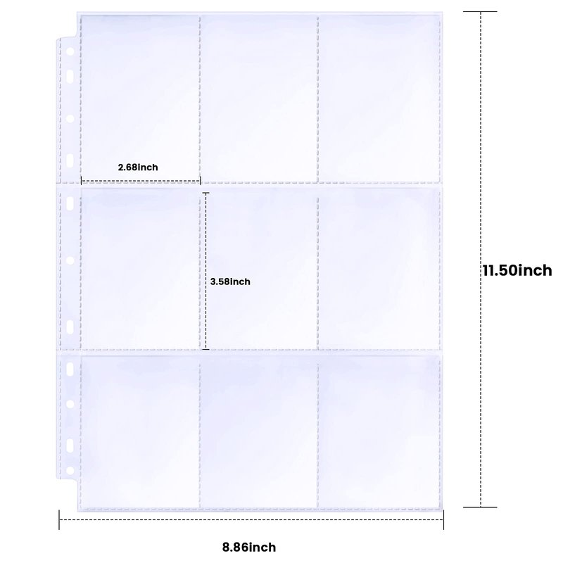 - Card Protector:9 Pockets for each page ,Double-Sided pages protector match with 3 Ring Binder, suitable for trading cards, sport cards, business cards, coupons, credit cards within 2.68x3.58 inch