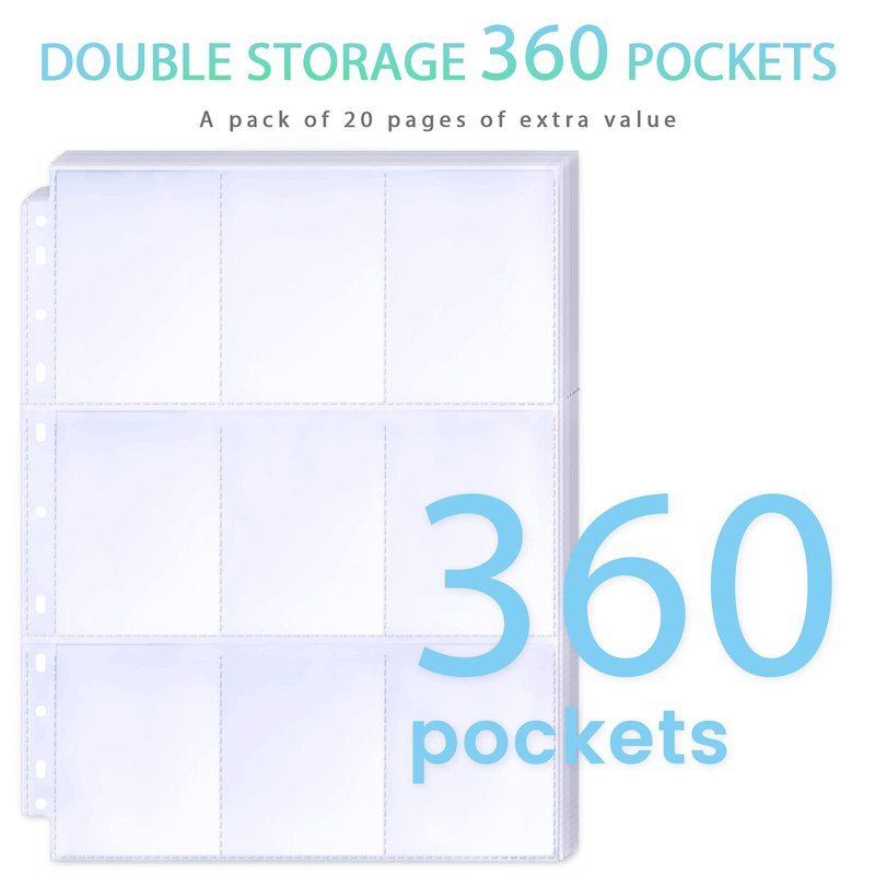 360 Pockets Binder Card Sleeves Double-Sided 9 Pocket Trading Card Pages for 3 Ring Binder, Clear Plastic Pages Sleeves for Sport Cards, Business Cards, Game Cards, Photos