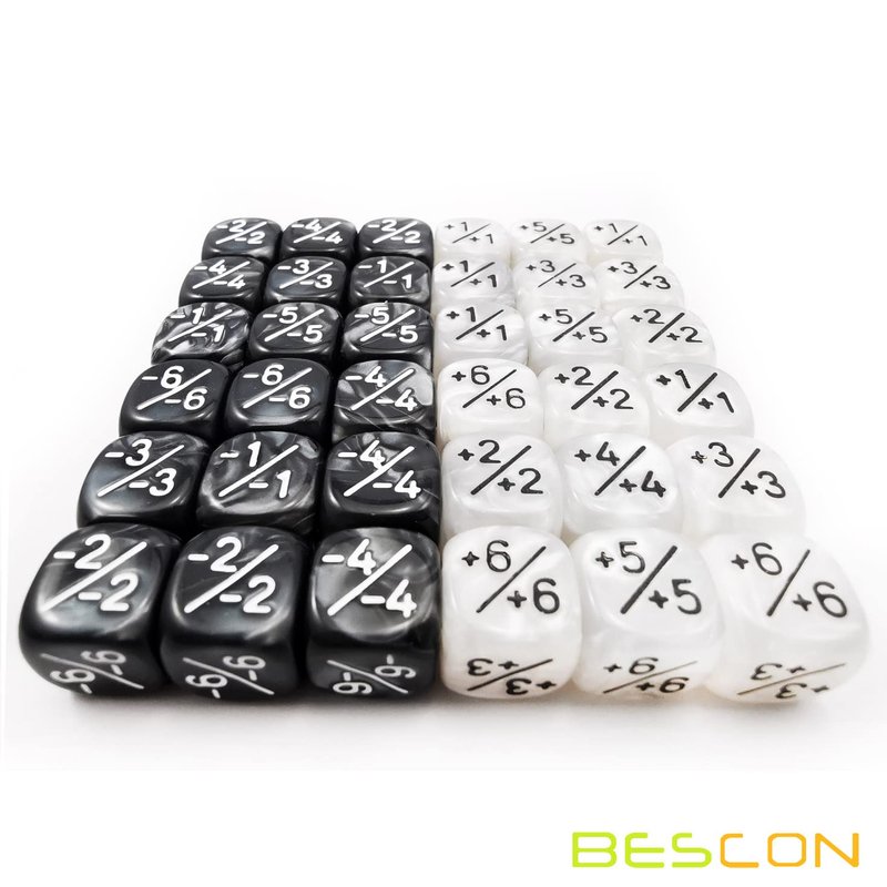 - Adequate Quantity: comes with 36 pieces of dice counters, including 18 pieces marble white positive dice counter and 18 pieces marble black negative dice counters, nice combination for satisfying your gaming using or replacing;