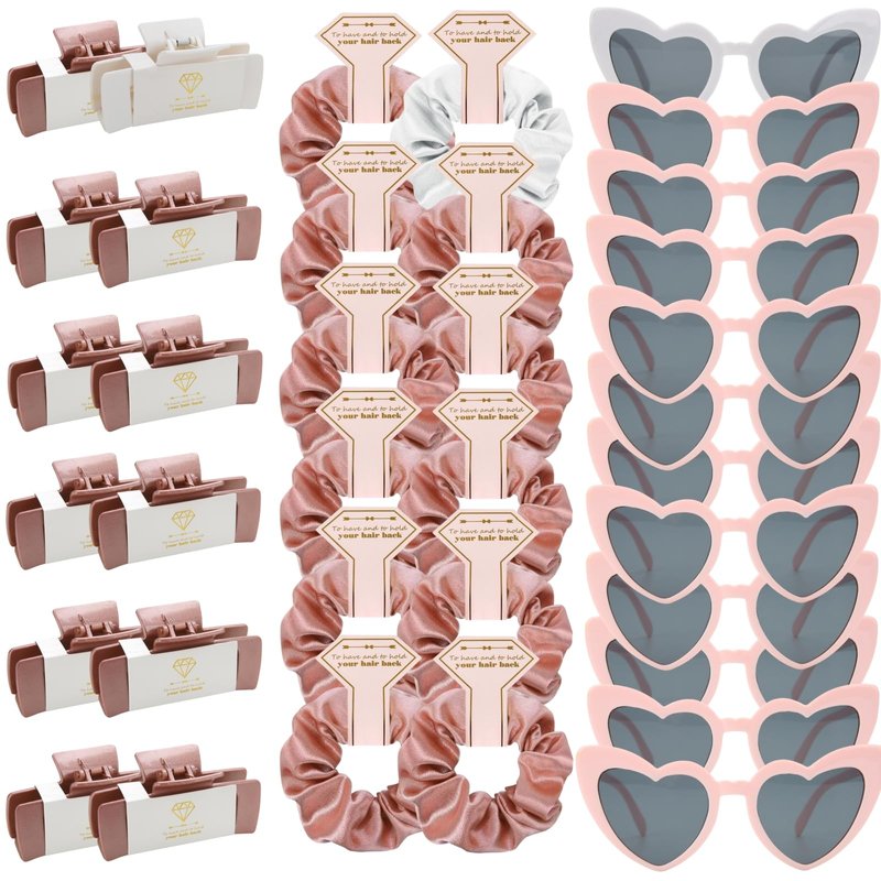 - Good ideas Bridesmaid Hair Claws bulk pack includes 12pcs 4.1 inch hair Claws clips ,12pcs hair Scrunchies and 12pcs Bachelorette heart sunglasses, all gifts for the bridesmaid.1pcs for you and 11pcs for your friend, Perfect as bachelorette party favors and bridesmaid gifts!