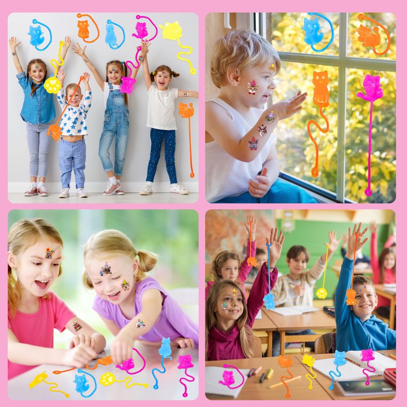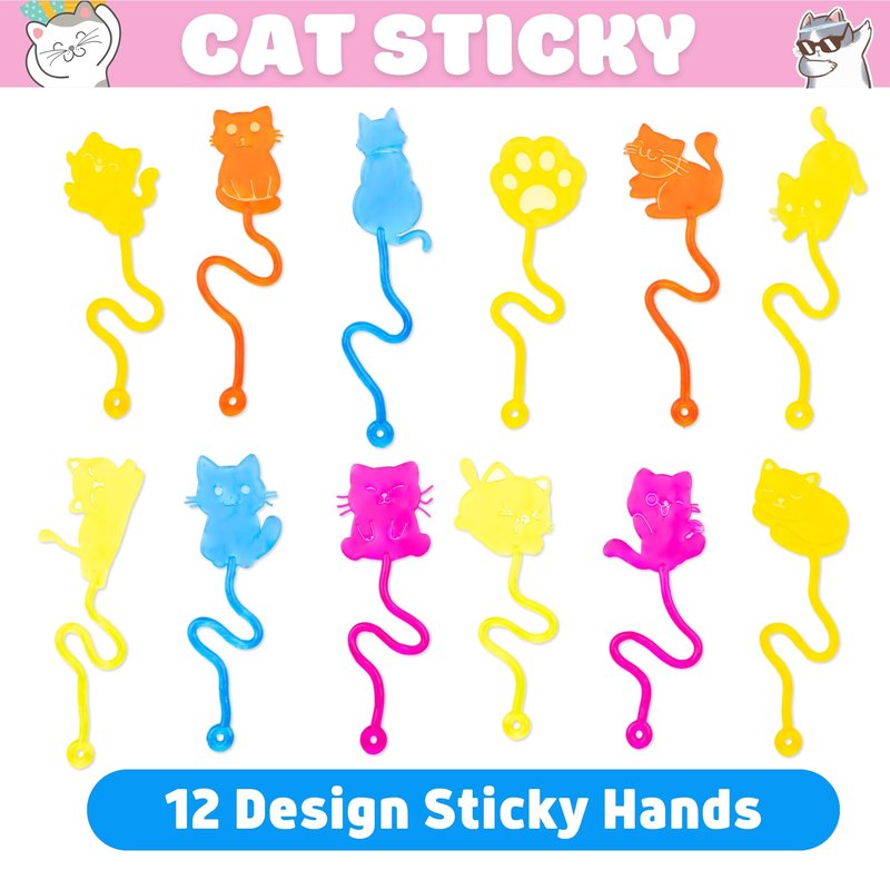 - 🏆【TREASURE BOX TOYS FOR CLASSROOM PRIZES】📦: Cat Sticky Hands and Temporary Tattoos are perfect for classroom supplies, back-to-school prizes, and treasure box rewards. Ideal for student prizes, classroom rewards, birthday party favors, and mini pinata toys for kids aged 4-8.