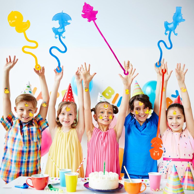 - đăKIDS BIRTHDAY PARTY SUPPLIES PINATA STUFFERSă: Stretchy and slimy Rubber Duck Sticky Hands, sized 6.9*2.36 inches, and cool Temporary Tattoos are fun for kids to enjoy at parties. Kids can toss and fling the sticky hands on ceilings, walls, windows, and tables, while the tattoos add an extra layer of fun. Perfect for birthday parties, summer parties, and carnival parties.