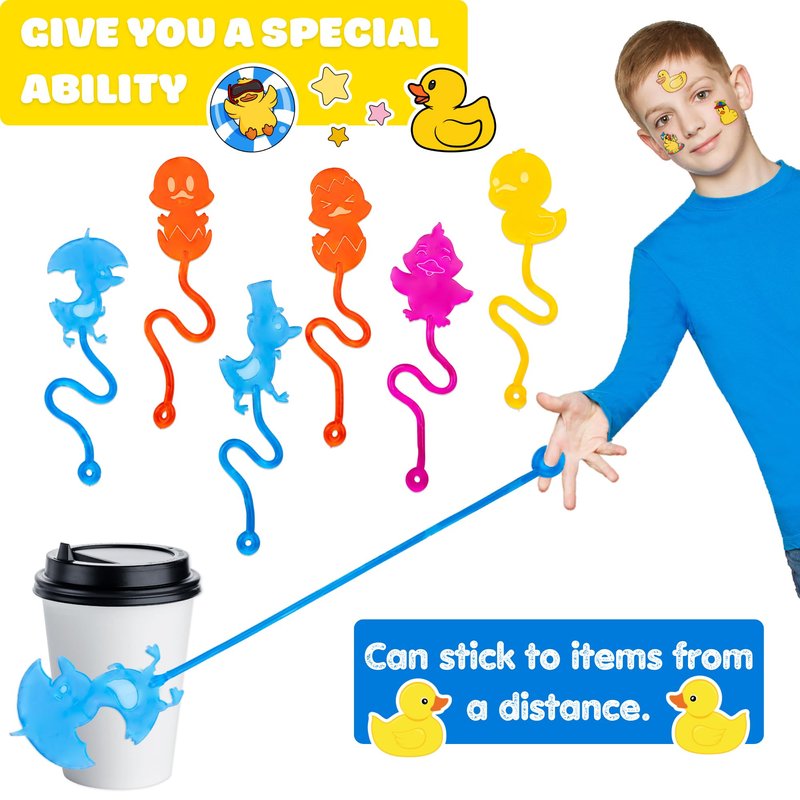 - đăTREASURE BOX TOYS FOR CLASSROOM PRIZESă: Rubber Duck Sticky Hands and Temporary Tattoos are perfect for classroom supplies, back-to-school prizes, and treasure box rewards. Ideal for student prizes, classroom rewards, birthday party favors, and mini pinata toys for kids aged 4-8.