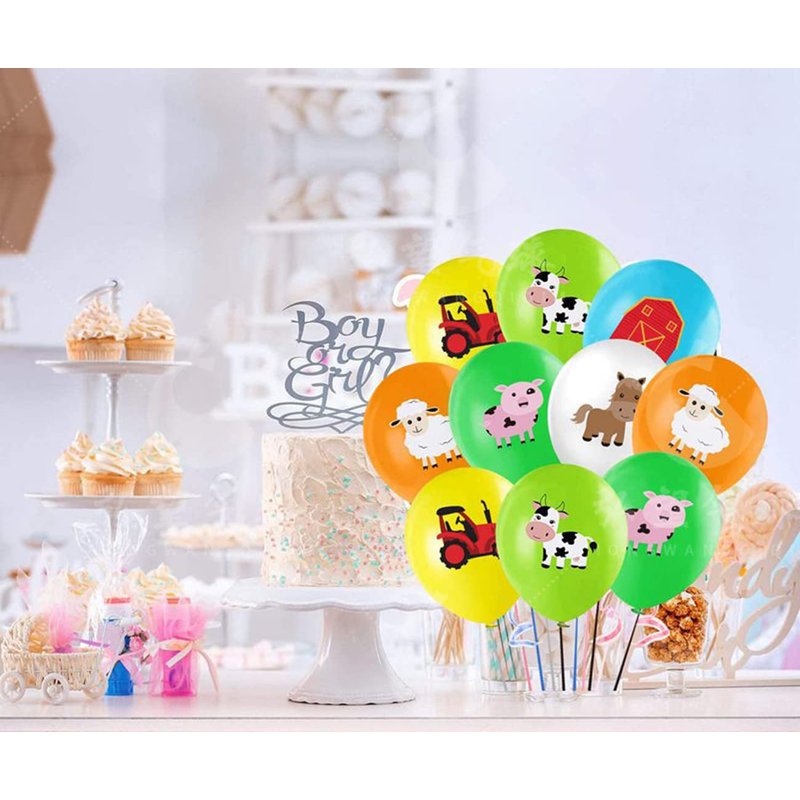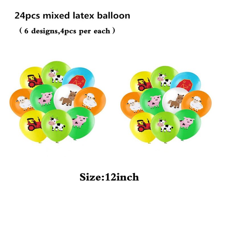 • 1.Package Included: You will get 36 pieces Party supplies.Include 6pcs Farm Animals Centerpieces Ornament,1pcs Farm Background cloth ,1pcs Big Horse Cow Pig and 2pcs Round Farm Foil balloons,and 24pcs Latex balloons. The cute designs and the proper size make these farm animals decorations become the shining and adorable party supplies for the birthday party.