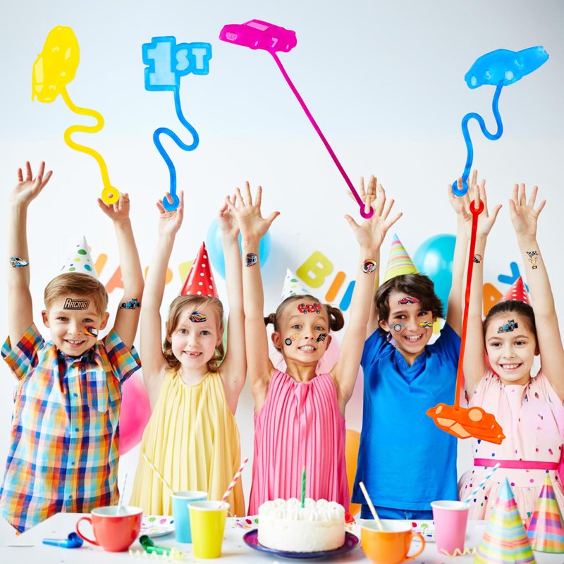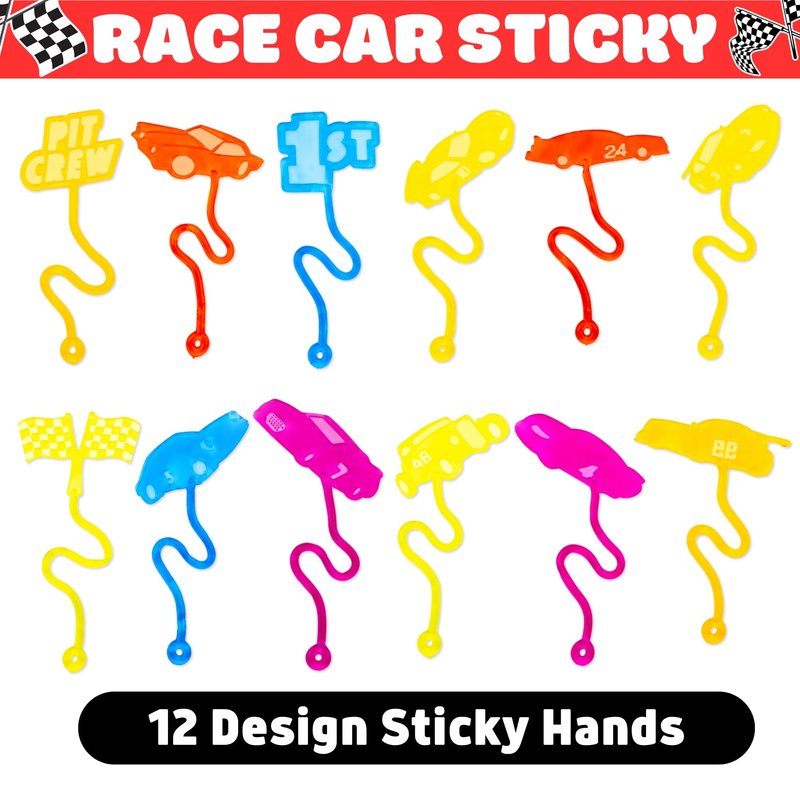 - 🎉【RACE CAR STICKY HANDS KIDS PARTY FAVORS】: 12 PCS Race Car Sticky Hand Fidget Toys and 24 PCS Temporary Tattoos are perfect party favors for kids aged 4-12. Made of non-toxic and child-safe material, BPA-free, and durable for long-time use. Ideal for birthday party favors, goodie bags, and toddler party favors for kids aged 4-8. These rainbow-colored toys and fun tattoos are also great for school events.