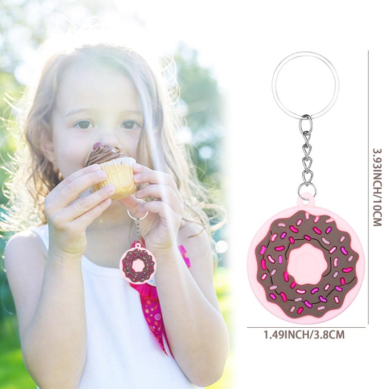 • Quality Material: our donut keychain for party favors are made of rubber, not easy to break, use a long time, very practical, can be easily hung on the key as a keychain, also can be hung on your backpack as an adorable decoration.