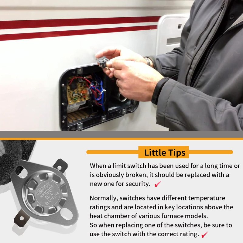 - 【Tips】Normally, switches have different temperature ratings and are located in key locations above the heat chamber of various furnace models. So when replacing one of the switches, be sure to use the switch with the correct rating. This limit switch is 190℉.