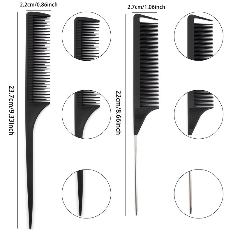 - About the Rat tail Styling Combs:The rat tail comb is crafted with ultra-high quality carbon fiber,anti-static and heat-resistant, lightweight and durable,the tail comb is designed for setting hair and creating unique styles for most hair types,with a comfortable handle, not easy to slide off your hands when you hold it,great for hair styling, parting hair, back combing, hair coloring and post styling hair,perfect tools for both salon, barber,home and cosmetology supply kits