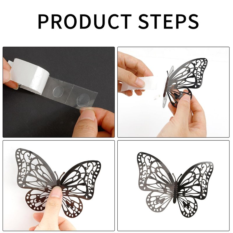 2. The butterfly stickers are with good adhesiveness, you don’t have to worry about them falling off the walls or other attached places. They are also removable, and very easy to be removed from the targeted places.