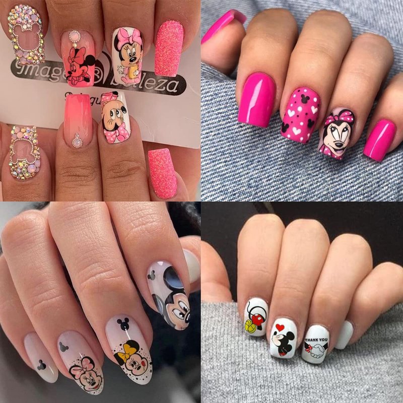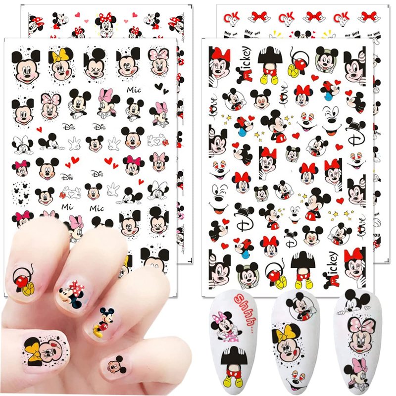 - Quantity: You will get 4 sheets cute cartoon nail art stickers, super cute and easy to use! can be used to decorate your own nail art, nail design, highlights and more. Perfect for fashionable women and trendy girl.