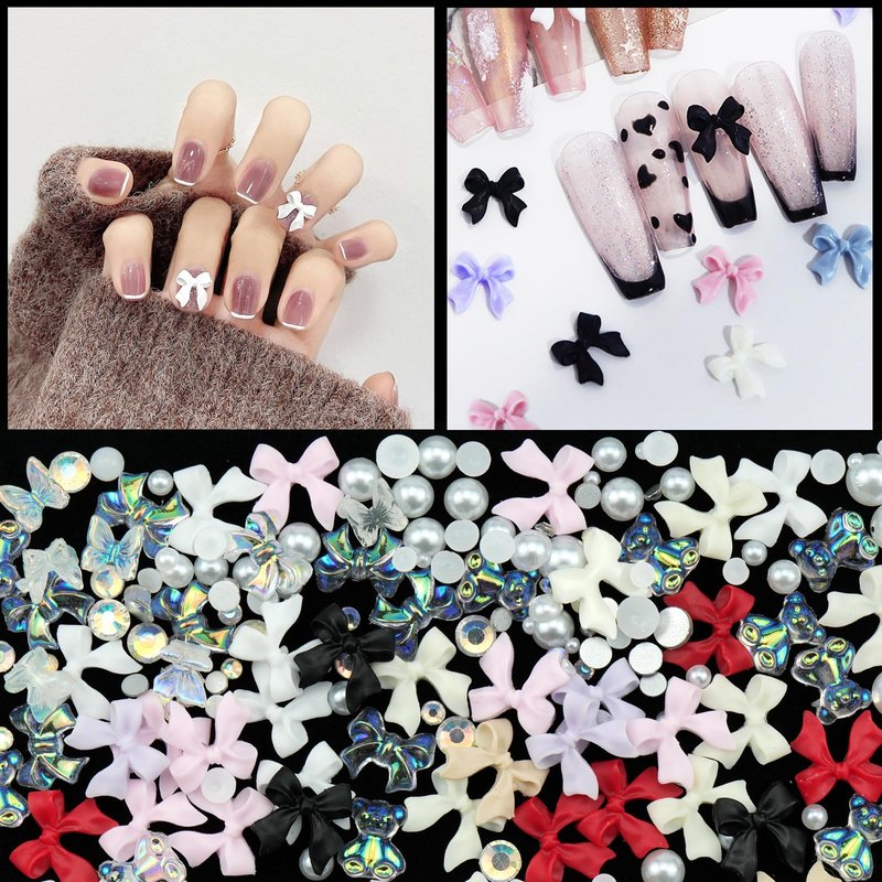 You will get a box of 3D bow nail charms with polar butterfly bear nail charms and flatback nail pearls gems in 12 grids. Great amount of different styles of nail charms for you to make various nail designs.