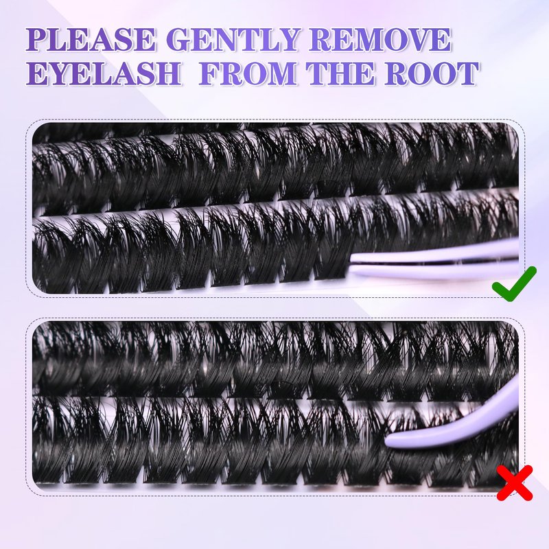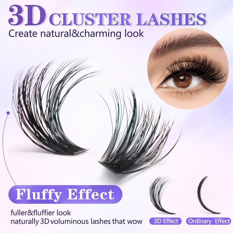 We worked hard to improve our lashes with superior grip ,The cluster lash extensions has 5 different designs, 9-16MIX 8-18MIX,100D 40D 50D 80D 30d diy cluster lashes , 108pcs/144pcs cluster eyelash extensions wispy/240pcs lash clusters d curl. Our individual mink cluster lash extensions can lasting curl and incredible fanning ability.