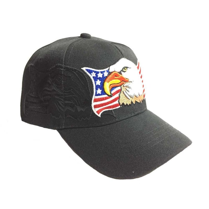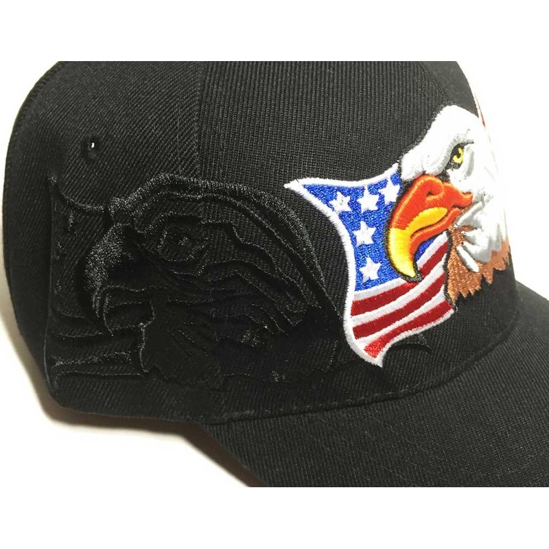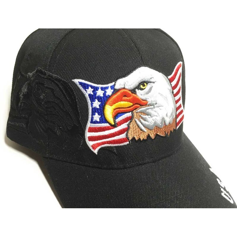 3D Emboridered Patriotic USA American Flag Flying Bird Design Baseball Cap Hat Visor (Black)