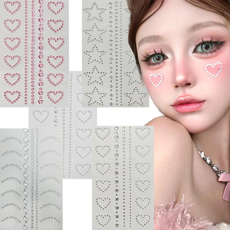3D Face Jewels Makeup Eyes Self-adhesive Crystal Diamond Tattoo Stickers Stars Heart Gems Pearl Rhinestones DIY Women Eyes Face Body Art Party Festival Accessories