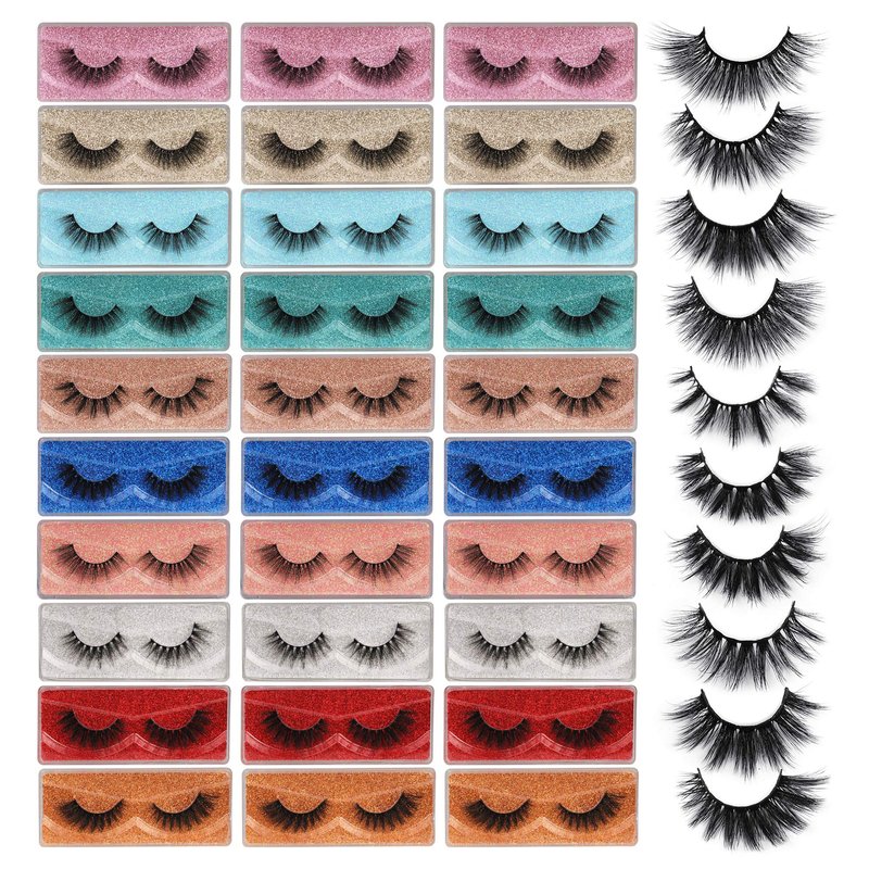 3D Faux Mink Lashes Wholesale Lashes Bulk 30 Pairs False Eyelashes Wispy 18mm Natural 10 Styles Mixed Soft Reusable Fake Eyelashes Pack with Glitter Portable Boxes