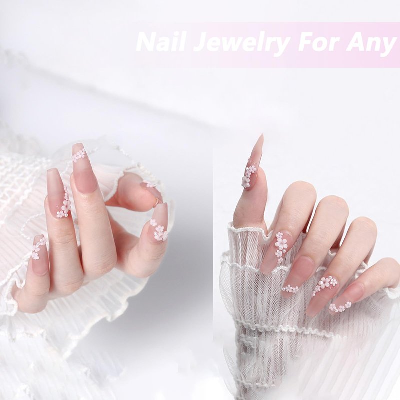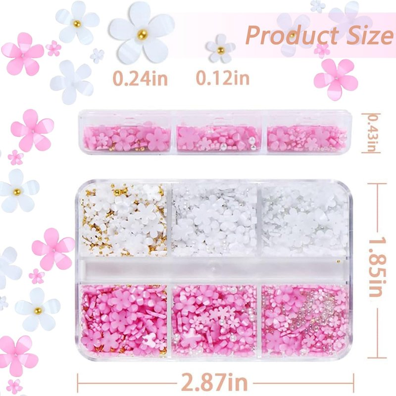 - 🌸Flower Nail Charms- Enhance your nail art designs with these beautiful 3D flower nail charms, available in pink and white, gold and silver beads, and pearls.