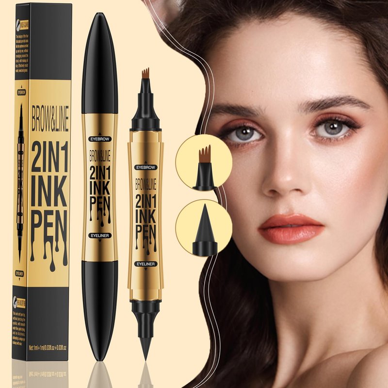 This eyebrow and eyeliner pen provides precise definition for brows and eyes. The dual-tip design features a thin tip perfect for hair-like strokes to shape brows naturally, and a slightly wider tip that glides on smoothly to line lids with its waterproof and long-lasting formula. The pigment-rich formula applies easily without skipping or tugging at the delicate eye area, and won't smudge or run even through tears, sweat or humidity. Lasting all day from dawn till dusk, it allows you to define your gaze with confidence. With its portable pen form and pigmented black shade suitable for all skin tones, this 2-in-1 tool is a must for achieving a polished look on the go in just a few effortless strokes.