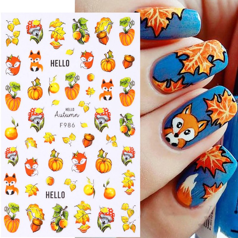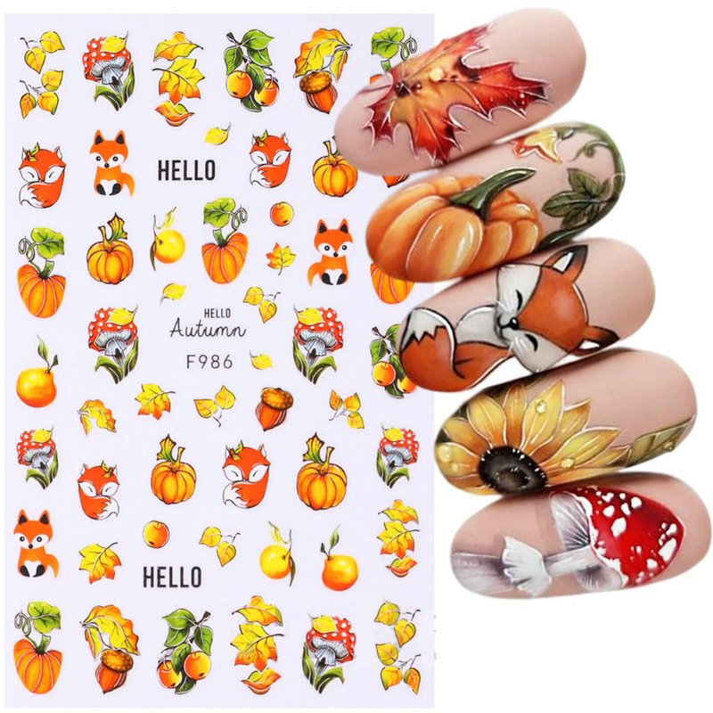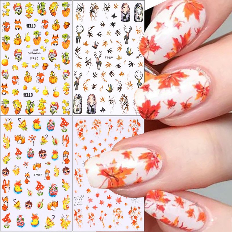 4 Sheets fall 3D self-adhesive Nail Stickers