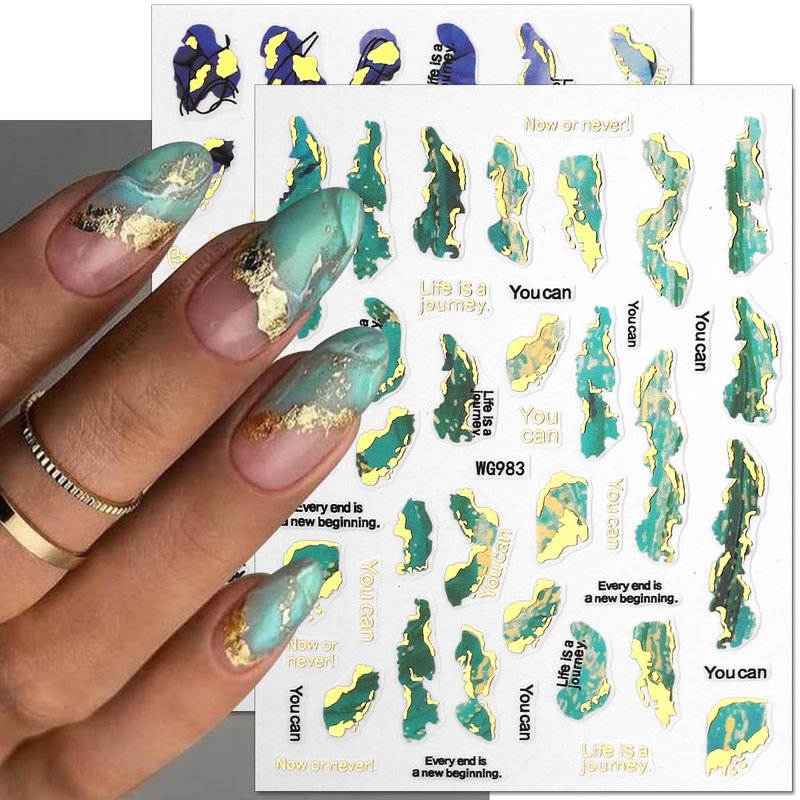 - ❤【3D Gold Foil Nail Art Decals】Hot stamping marble nail art stickers, the gold foil matches the colorful marble patterns, unique and personalized, bring an unprecedented aesthetic experience, can make your nails become more beautiful and attractive, instantly enhance your nail charms.