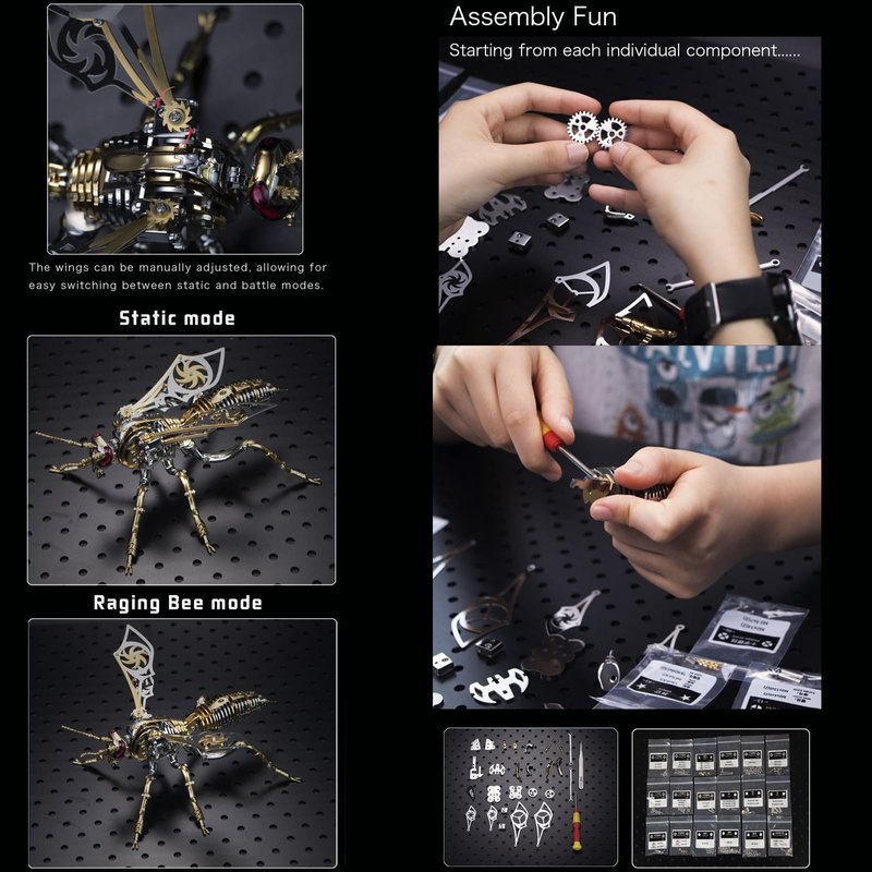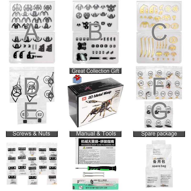 - Composition: 314 parts, tools and instructions, contain the head, trunk, abdomen, wings, legs. the instructions have assembly steps, no need to worry, also you can do it with your family