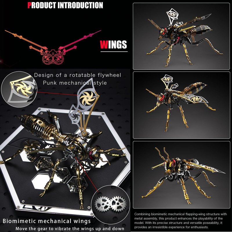 3D Metal Puzzle Wasp Model Kits: Mechanical Metal Puzzles for Adults Challenging DIY Assembly with Tools Building Block as Birthday Gift