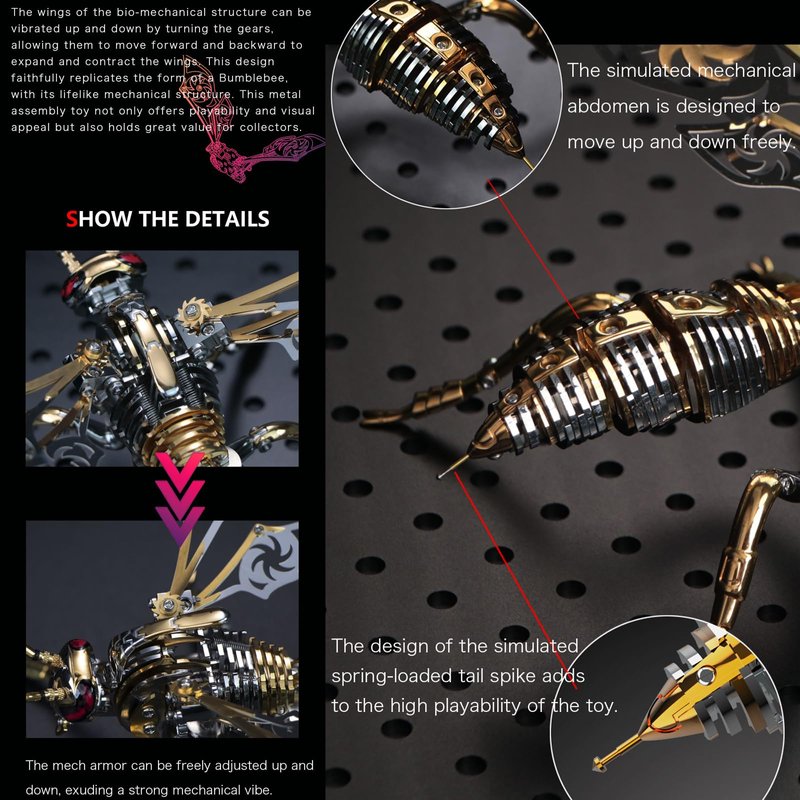 - Contains: This metal wasp model kits contains the head and tentacles,the trunck and the wings,the abdomen and the legs,each component is smooth polished to maintain long-lasting metallic luster and exquisite appearance, refer to the instructions patiently for assembly. suitable for people who like DIY and you will release pressure during assembly