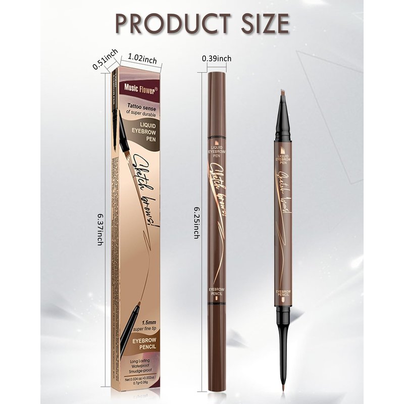 - Innovative Dual-headed Brow Pen - The 2-in-1 Dual-Ended eyebrow pencil for women has a 4-prong micro-fork-tip to fill in gaps and define natural-looking eyebrows quickly, the other end has precise micro-fine brush-tip applicator to draw hair-like strokes, to complement the brow detail, making brows look more voluminous. The brow pen can save a lot of time, even in busy morning, you can apply it easily and quickly, build a natural brow look!