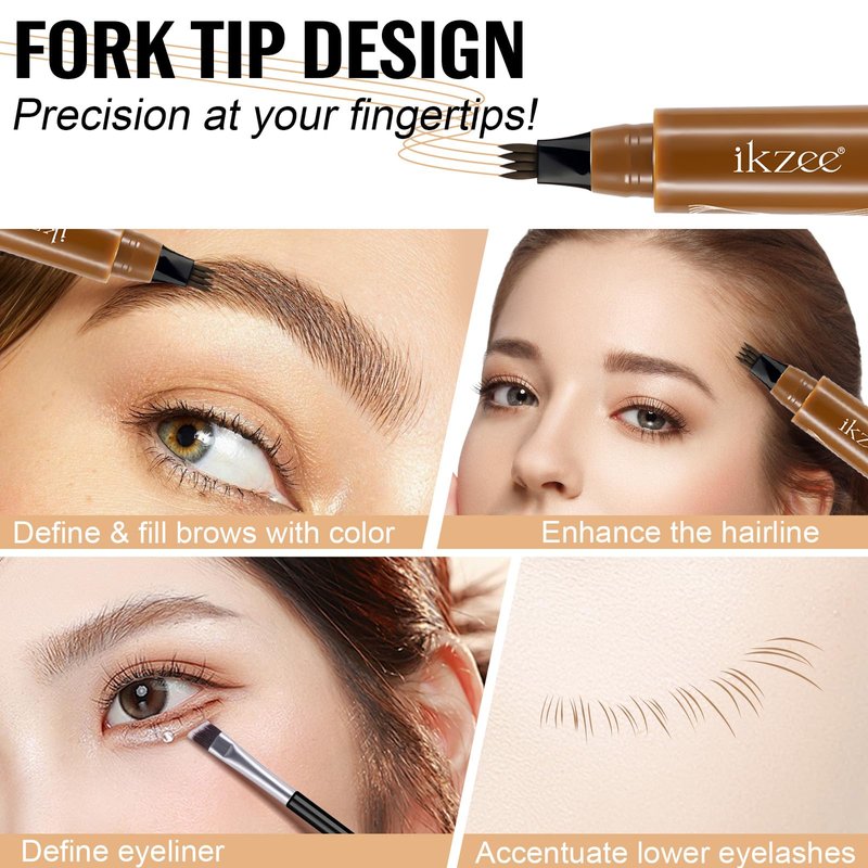 - 【Magical 4-Prong Brow Pen】2-in-1 double-ended eyebrow pencils for women has precise ultra-fine brush-tip to create tiny hair-like strokes for natural finish, 4-prong fork-tip brow applicator for shading, filling in sparse areas and blend color into brows.