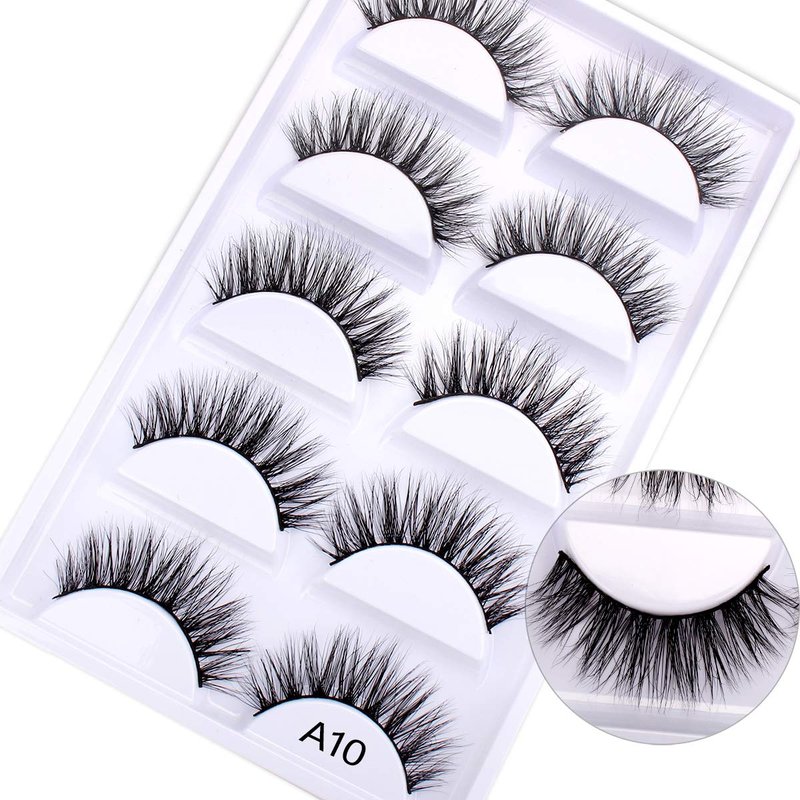 3D Mink False Eyelashes Pack Real Siberian Luxurious Messy Cross Dramatic Lightwight Soft Mink Fake Eyelashes Set 5 Pairs A10-5(The New)