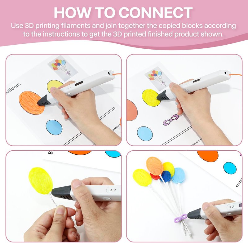 *** 3D printing pen and filaments are not included.***