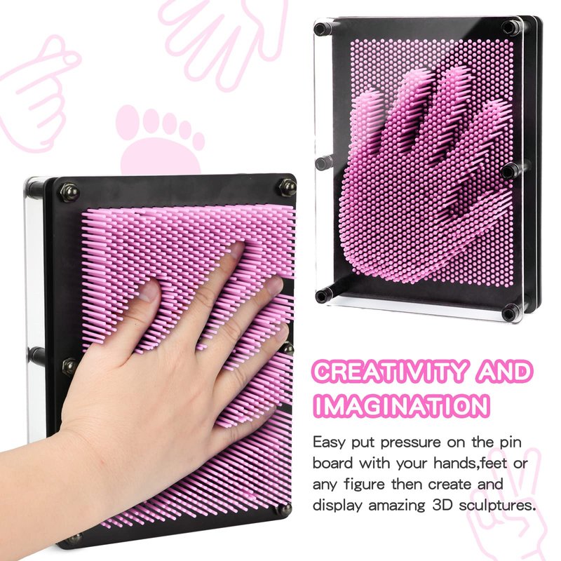 - Pin Toy Features: Unique plastic pin board toy is different from metal pin impression toy; Our hand pin toy is lighter than other impression toy; Anytime you want to make a new print you place it horizontally and the pins toy is back the way it was